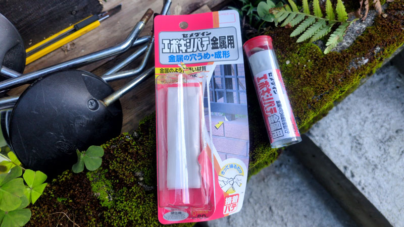ヘリコイルをねじ込むことも考えたのですが、もう少しお手軽に修理したい…ということで、金属のようにカチカチになるエポキシパテを試してみることにしました。
