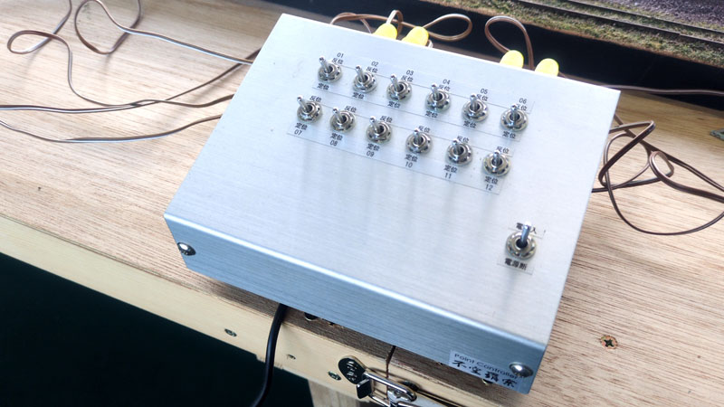 ポイントコントローラーには12個のスイッチがあるのですが、上段の1、2、5、6、下段の7、8、11、12をレイアウトのポイントの配置と対応させています。
