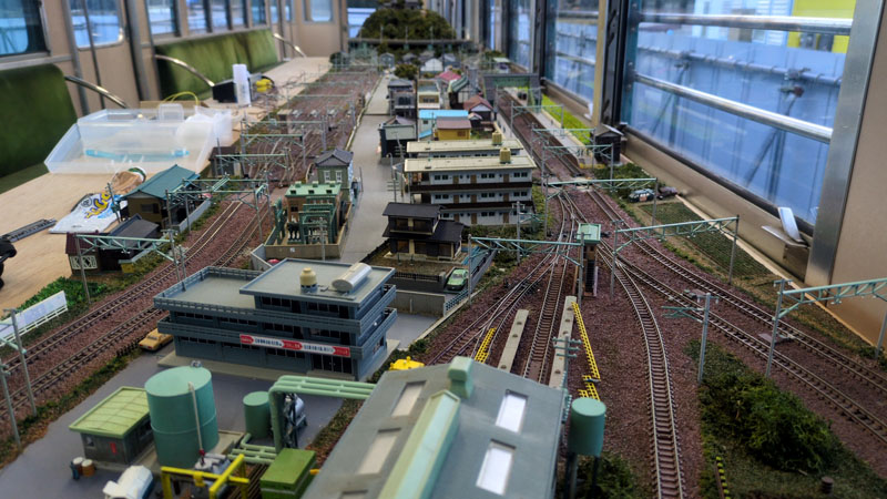 先日の82号まつり用に、簡単に取り外しができる展示台を作ったのですが、ここに置いたらどんな感じかな。実はもともとレイアウト展示も想定していて、展示台の長さを3600mm確保していたんですよ。
